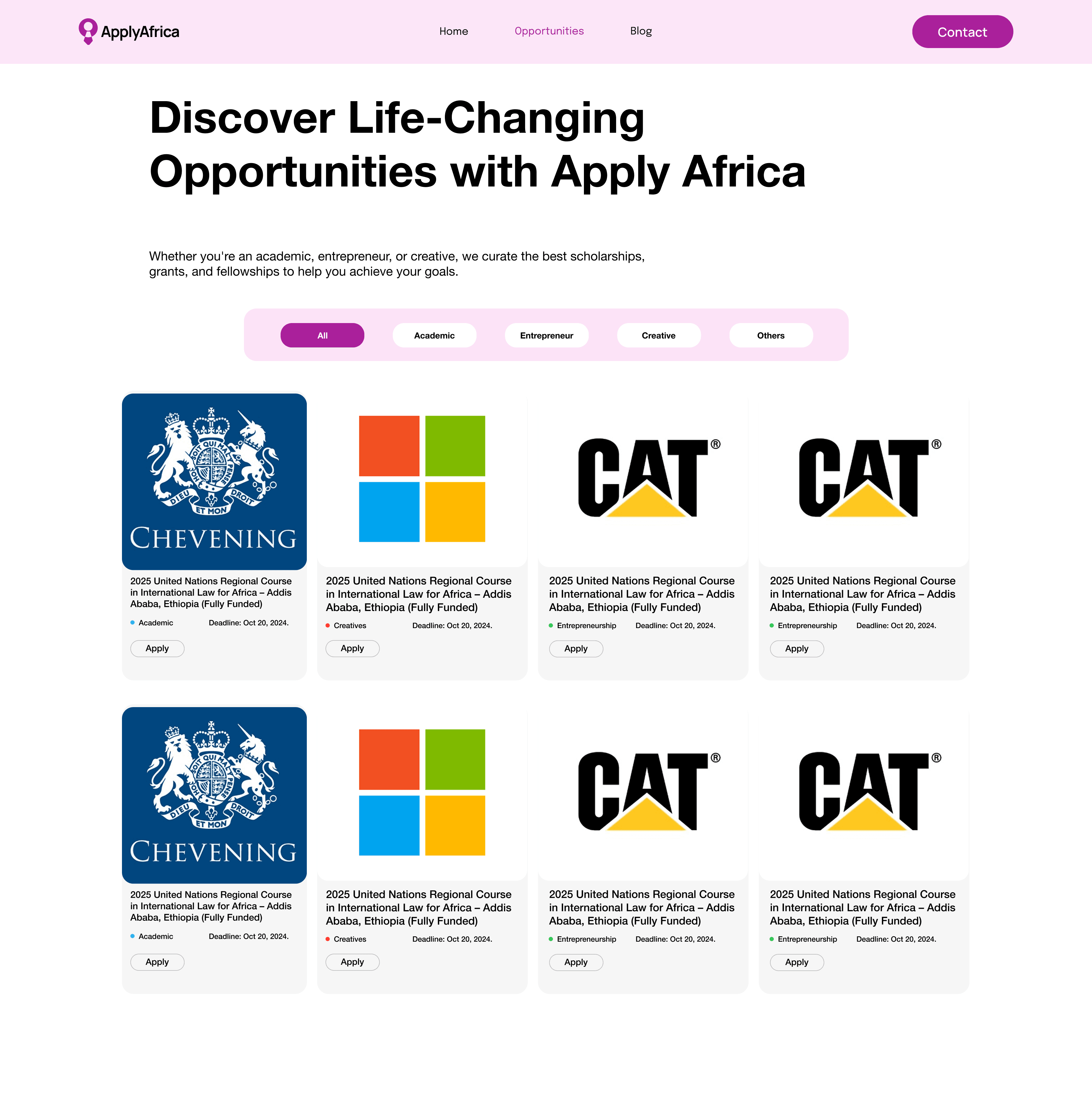 ApplyAfrica is a dynamic platform designed to connect individuals in academia, entrepreneurship, and professional sectors with opportunities across Nigeria and Africa. By centralizing information on scholarships, grants, internships, and fellowships, ApplyAfrica simplifies the search and application process for users seeking personal and professional development.