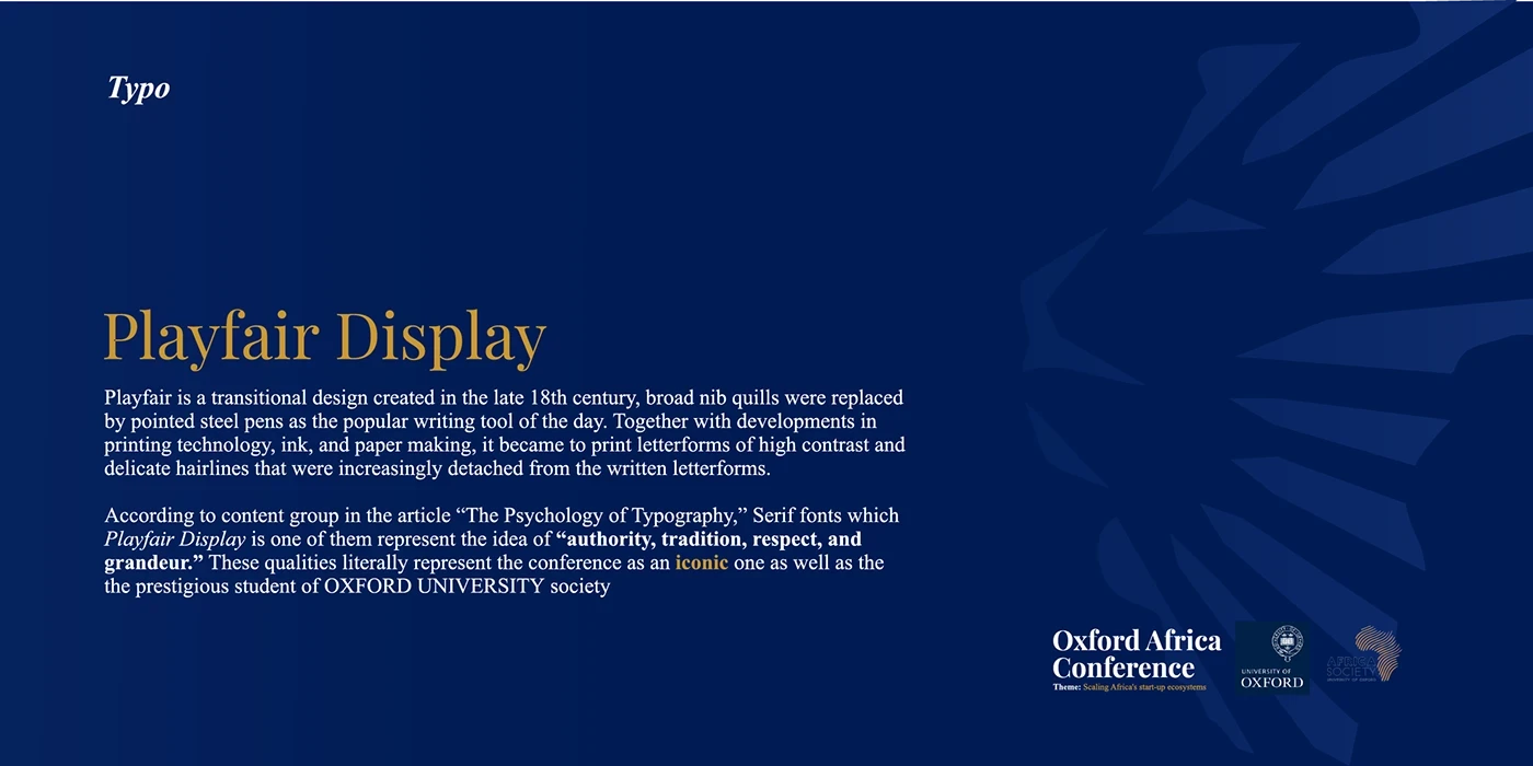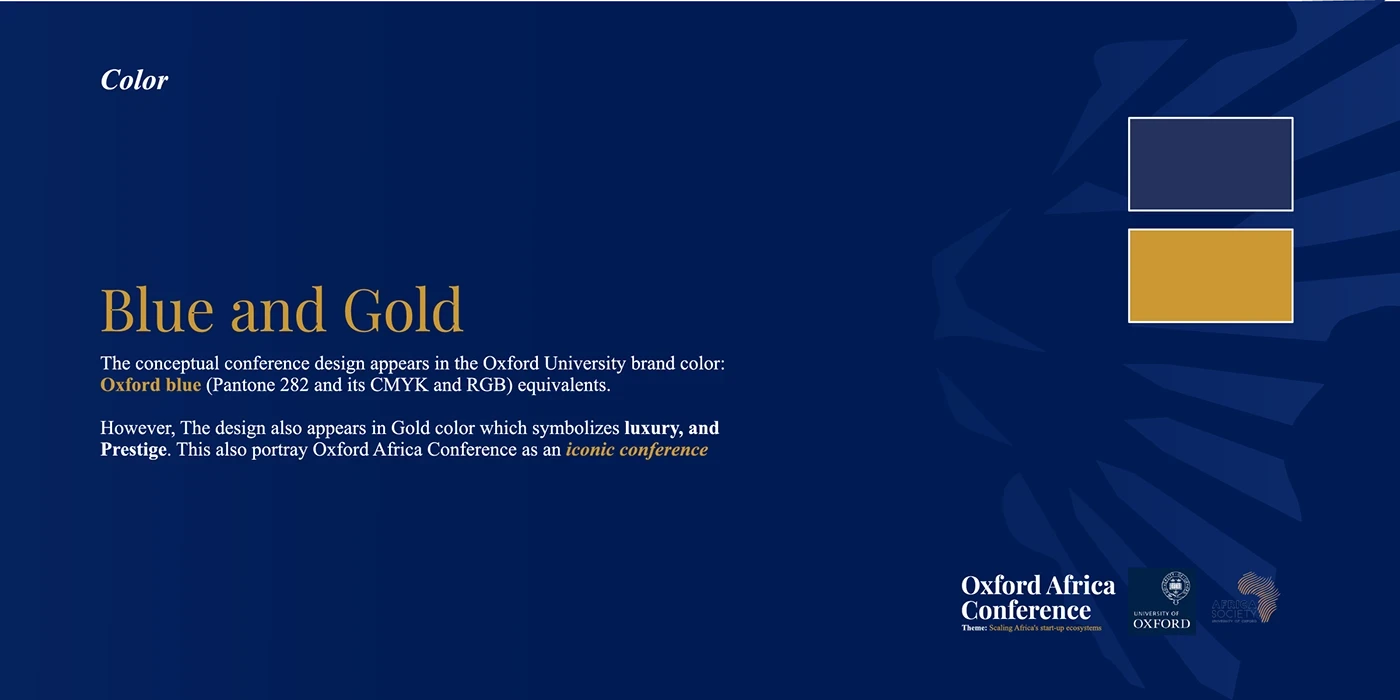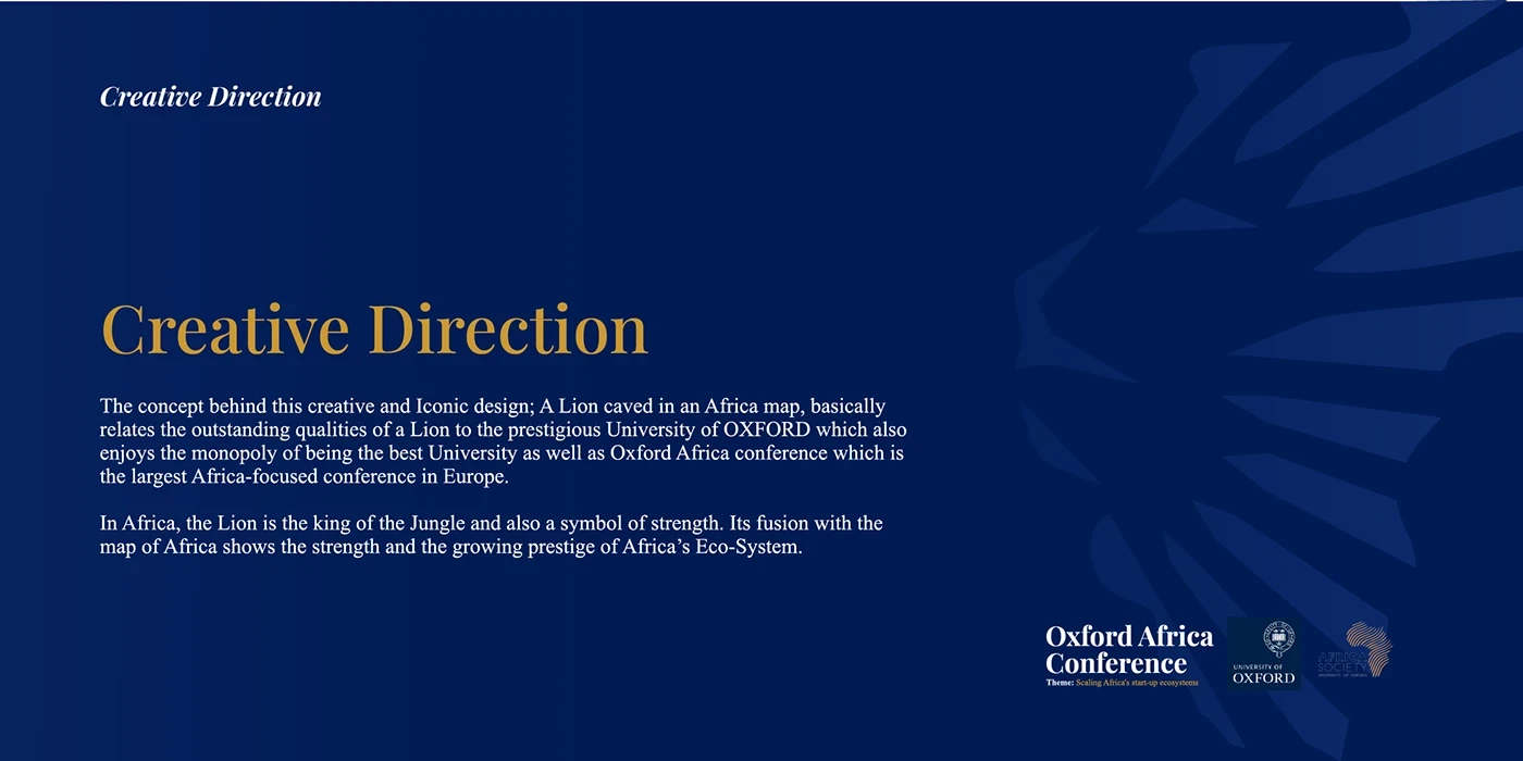 In 2022, I had the exciting opportunity to design a conceptual brand identity for the Oxford University Africa Conference, one of the largest Africa-focused events hosted by students at the University of Oxford. The challenge was to capture the essence of African innovation, leadership, and cultural diversity, while maintaining the academic prestige associated with Oxford. I approached the project with a design philosophy rooted in modern minimalism blended with bold, cultural symbolism, creating a striking visual system that could stand confidently on a global stage. The centerpiece was a dynamic logomark inspired by African motifs and patterns, radiating energy and progress.